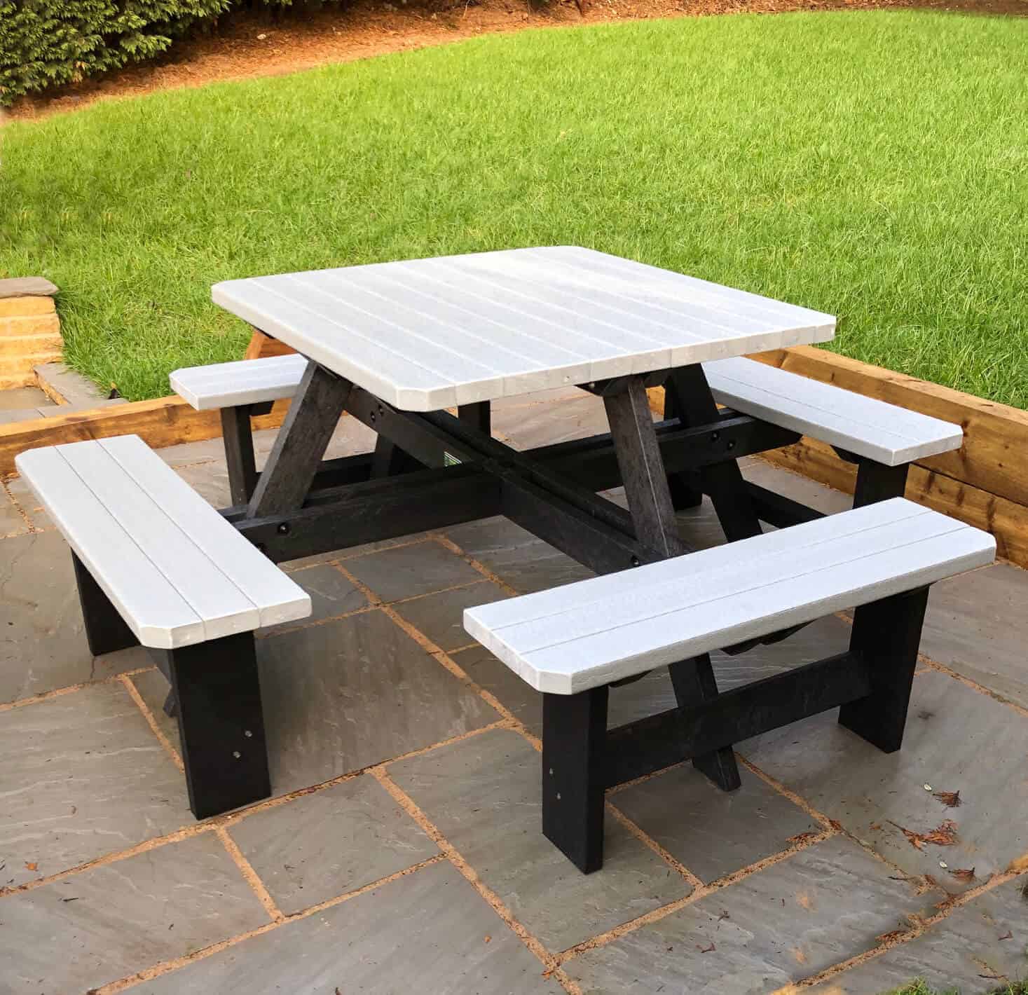 We purchased a Rainbow Bradbourne Picnic Table along with other products for our outdoor eating area and are very pleased with all of them.