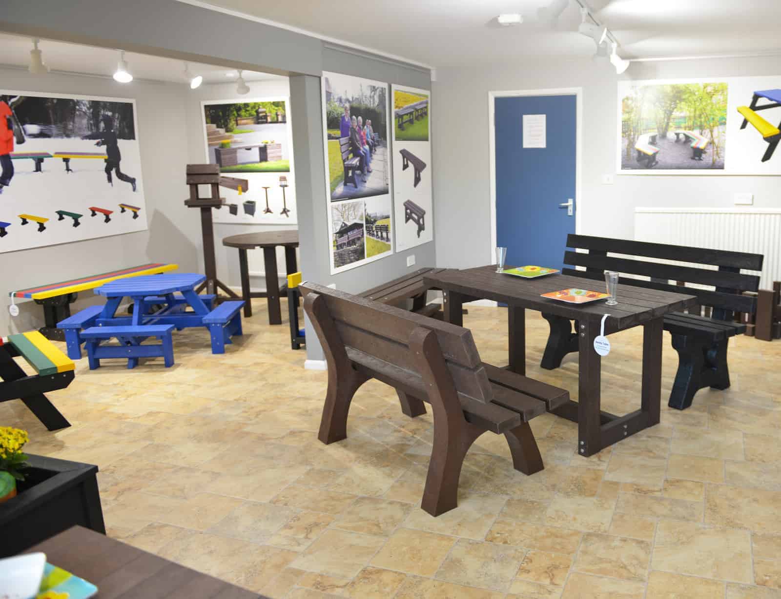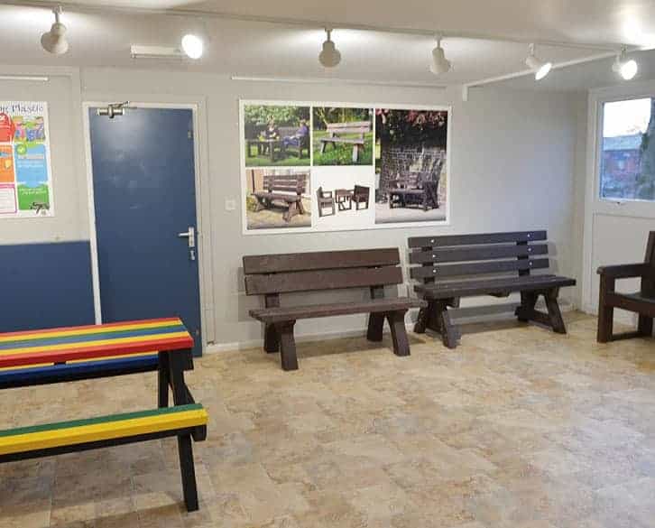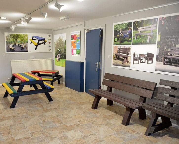 With the growing success of the recycled range TDP were frequently being asked by customers if they could see the product before purchasing, so the project commenced to develop a showroom where customers can touch, feel the outdoor range of recycled plastic products, from seats to nest boxes.